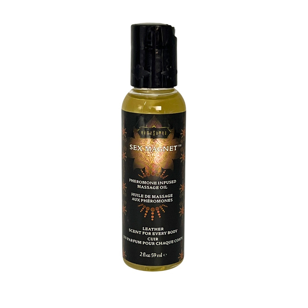 Discover the captivating allure of Kama Sutras Sex Magnet Pheromone Massage Oil in the seductive Leather scent. This unique, one-of-a-kind fragrance, with notes of Leather, Cedar, and Musk, will undoubtedly intrigue and attract. The rich, velvety formula offers an exquisite sensory experience, making it perfect for a sensual massage to ignite passion and desire.Key Ingredients: Leather: A powerful, undeniably erotic scent that exudes confidence and sensuality. Musk: An enchanting, intoxicating aroma that stimulates the senses and makes your scent unique to you. Cedar: A strong, steady, and effortlessly sexy scent that commands attention with its crisp, smoky allure.The Kama Sutra Sex Magnet Pheromone Massage Oil is perfect for couples seeking to add a new level of intimacy and allure to their romantic encounters. This massage oil is not intended as a sexual lubricant, but it can create a tantalizing, erotic atmosphere that sets the stage for a memorable night.