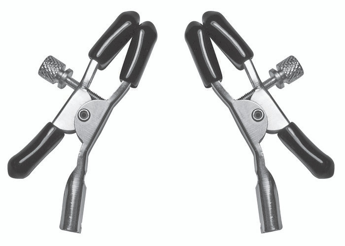 From Sportsheets Sexperiments line Nipple Clips feature 2 fully adjustable multi-use basic clamps for him or her. Soft pads for added comfort and can be removed. Tension adjustments make them perfect for nipple stimulation as well as many other sensitive areas. Includes: 1 pair of Nipple Clips. Materials: 85% nickel free metal, 10% PVC, 5% ABS plastic.