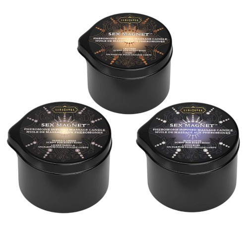 This pheromone massage candle melts into a warm massage oil. The fragrance adjusts to your body's chemistry to create a one-of-a-kind scent that is unique to you. With notes of Leather and Cedar, this bold scent will be sure to attract. The warm, melty formula is never too hot and makes it a pleasure to give or receive a sexy, full-body massage. Check out our Sex Magnet Blue Lotus Pheromone Massage Candle here. Creates a unique fragrance on every body Leather scent is bold and intense Melts into a warm, relaxing massage oil Made in the USA with quality ingredients